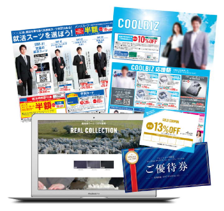 流行の新作から定番モノまで 商品の持つ世界観を大切にします 都心のセレクトショップさまや、業界大手の紳士服ブランドさまをクライアントに、折込チラシやDM、リーフレットや連動したWEBサイトなど、販促プロモーションの企画立案・撮影・制作を担当させていただいております。 案件によっては、年間通じての専属の制作チームも抱え、機能性やファッション性に特化した商品コピー開発や、大規模な撮影ディレクション。質感を大切にした小物の撮影まで、一気通貫の制作体制で業務を行っています。